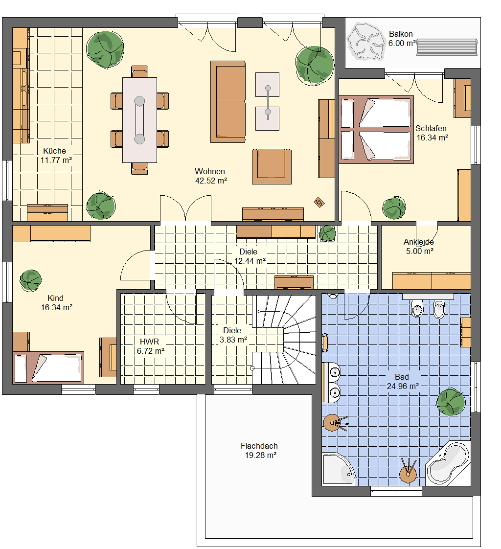 In den 60-er und 70-er Jahren hauptsächlich bei Bungalows anzufinden, steht das Flachdach heute für futuristische und zeitgenössich moderne Gebäude. Häuser mit Flachdach bestechen durch ihre klaren Formen, da die Gestaltungsmöglichkeiten begrenzter sind, als bei Satteldachkonstruktionen. Allerdings ist es auch wartungsintensiver als z.B. ein Satteldach. Gerade hier muss besonders Wert gelegt werden auf eine fachmännische Abdichtung und Entwässerung.
