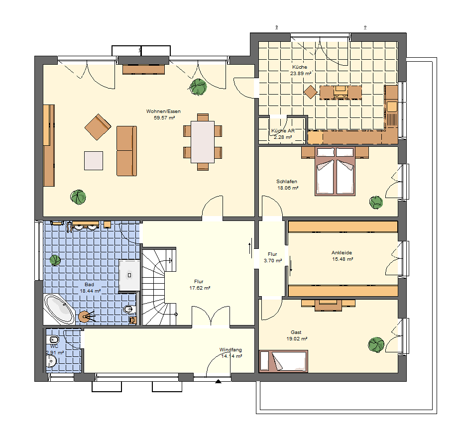 Wer die Vorzüge eines Hauses genießen möchte, ohne Treppen steigen zu müssen, ist mit einem Bungalow bestens beraten. Nach der Boomzeit Mitte des 20. Jahrhunderts, ist er ein wenig in Vergessenheit geraten. Mittlerweile erfreut sich diese praktische Bauform wieder aufkommender Beliebtheit. Oftmals wird ein Bungalow mit einem Flachdachhaus in Verbindung gebracht. Zwar hat der Großteil, der im Bungalow-Stil erbauten Häuser ein Flachdach, ein Bungalow kann aber auch andere Dachformen besitzen. Da keine tragenden Wände oder die Statik darüberliegender Geschosse berücksichtigt werden muss, eignet sich der Bungalow sehr gut für eine offene Grundrißgestaltung. Der Bungalow ist im Prinzip die Urform des barrierefreien Wohnens.