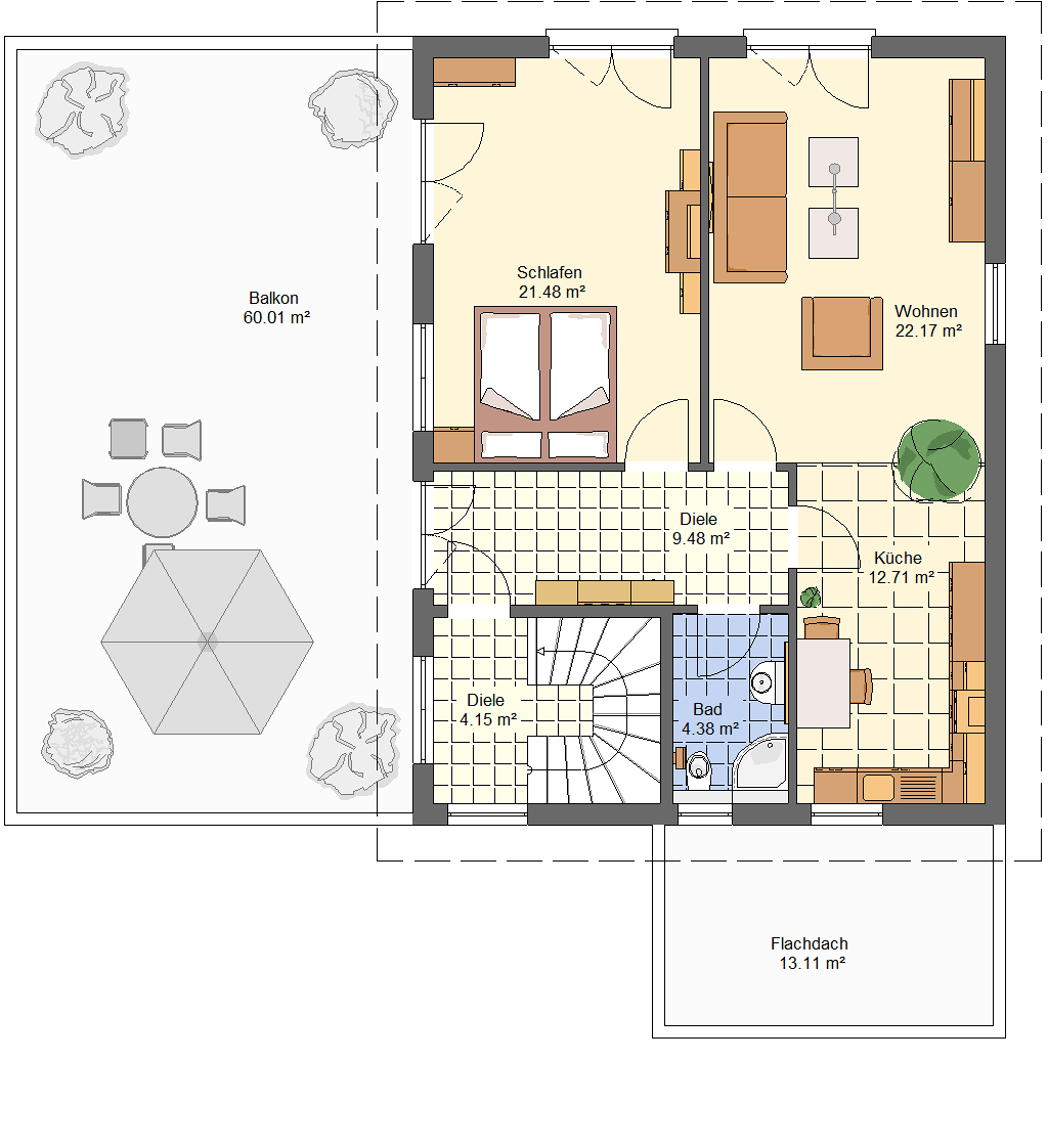 In den 60-er und 70-er Jahren hauptsächlich bei Bungalows anzufinden, steht das Flachdach heute für futuristische und zeitgenössich moderne Gebäude. Häuser mit Flachdach bestechen durch ihre klaren Formen, da die Gestaltungsmöglichkeiten begrenzter sind, als bei Satteldachkonstruktionen. Allerdings ist es auch wartungsintensiver als z.B. ein Satteldach. Gerade hier muss besonders Wert gelegt werden auf eine fachmännische Abdichtung und Entwässerung.