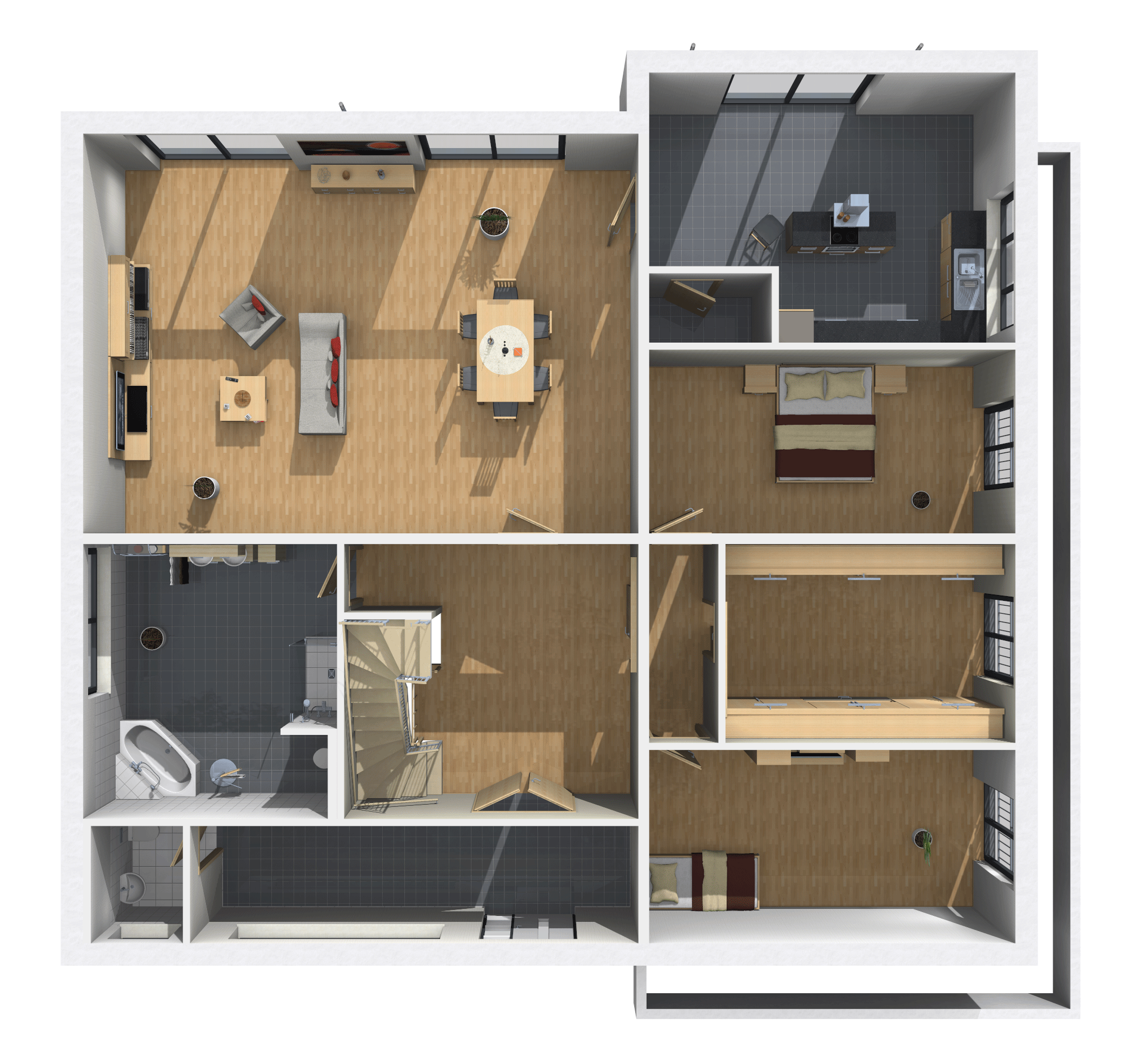 Wer die Vorzüge eines Hauses genießen möchte, ohne Treppen steigen zu müssen, ist mit einem Bungalow bestens beraten. Nach der Boomzeit Mitte des 20. Jahrhunderts, ist er ein wenig in Vergessenheit geraten. Mittlerweile erfreut sich diese praktische Bauform wieder aufkommender Beliebtheit. Oftmals wird ein Bungalow mit einem Flachdachhaus in Verbindung gebracht. Zwar hat der Großteil, der im Bungalow-Stil erbauten Häuser ein Flachdach, ein Bungalow kann aber auch andere Dachformen besitzen. Da keine tragenden Wände oder die Statik darüberliegender Geschosse berücksichtigt werden muss, eignet sich der Bungalow sehr gut für eine offene Grundrißgestaltung. Der Bungalow ist im Prinzip die Urform des barrierefreien Wohnens.