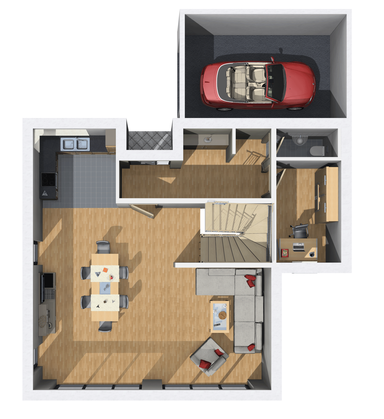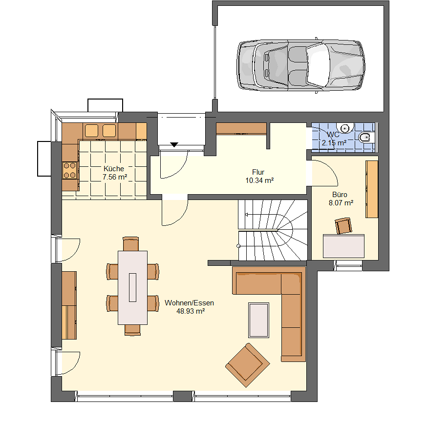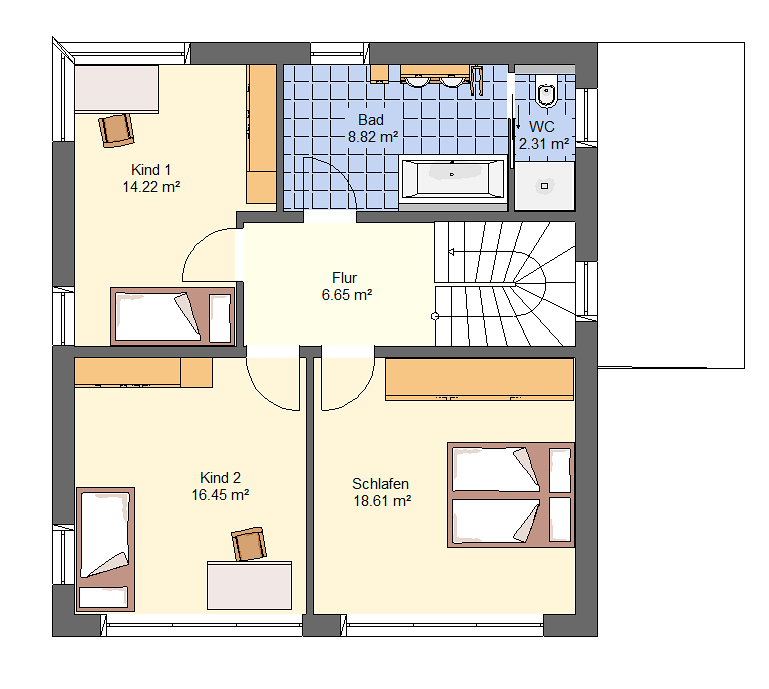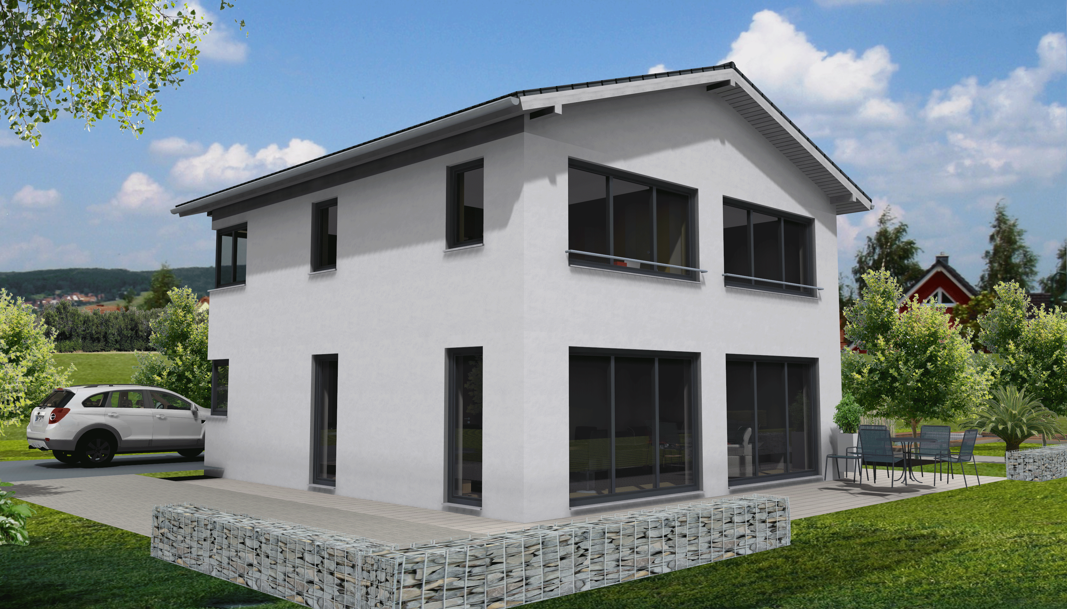 Bewährt und dazu praktisch und preiswert: Der unschlagbare Vorteil von Häusern mit Satteldach ist die Fülle an unterschiedlichen Dachneigungen und Traufhöhen. Dadurch lässt sich diese Dachform auf fast jedem Grundstück realisieren. Durch die Neigung des Daches bekommt das Haus seinen ganz eigenen Charakter. Ein Studio im Dachspitz bietet Ausbaureserven für Später, wenn z.B. größere Kinder hier ihr „Eigenes Reich“ bekommen. Das spart Geld während der Bauzeit.
