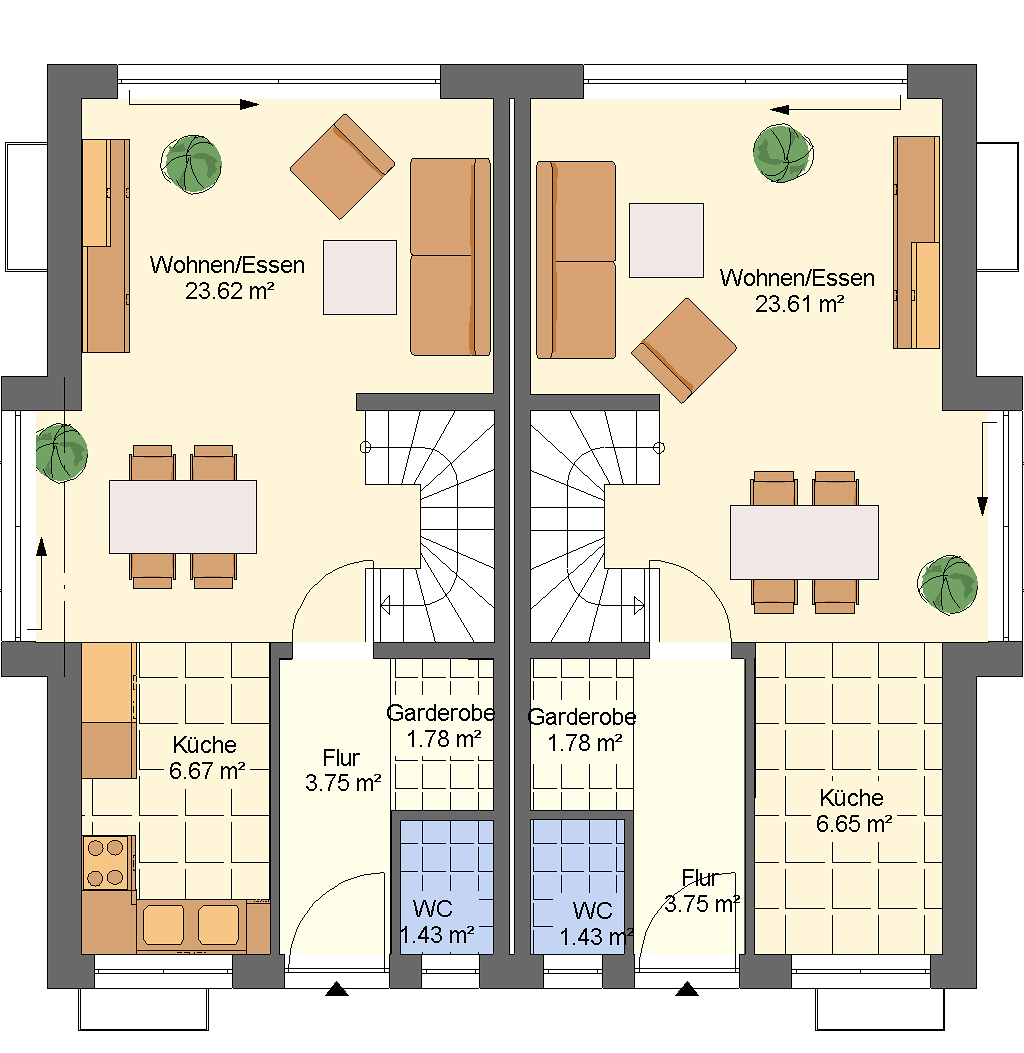 In vielen Regionen, vor allem Ballungsräumen, sind Grundstücke rar und die m²-Preise steigen. Die Doppelhauhälfte bietet sich an, wenn die Grundstückspreise und –größen den Bau eines freistehenden Hauses nicht zulassen, aber dennoch auf einen gewissen Komfort nicht verzichtet werden soll. Neben einer günstigen Flächenausnutzung gibt es als positiven Nebeneffekt so gut wie keinen Wärmeverlust an der geteilten Wand. Umso wichtiger ist eine gute Schallisolierung der gemeinsamen Wand – und eine gute Nachbarschaft.